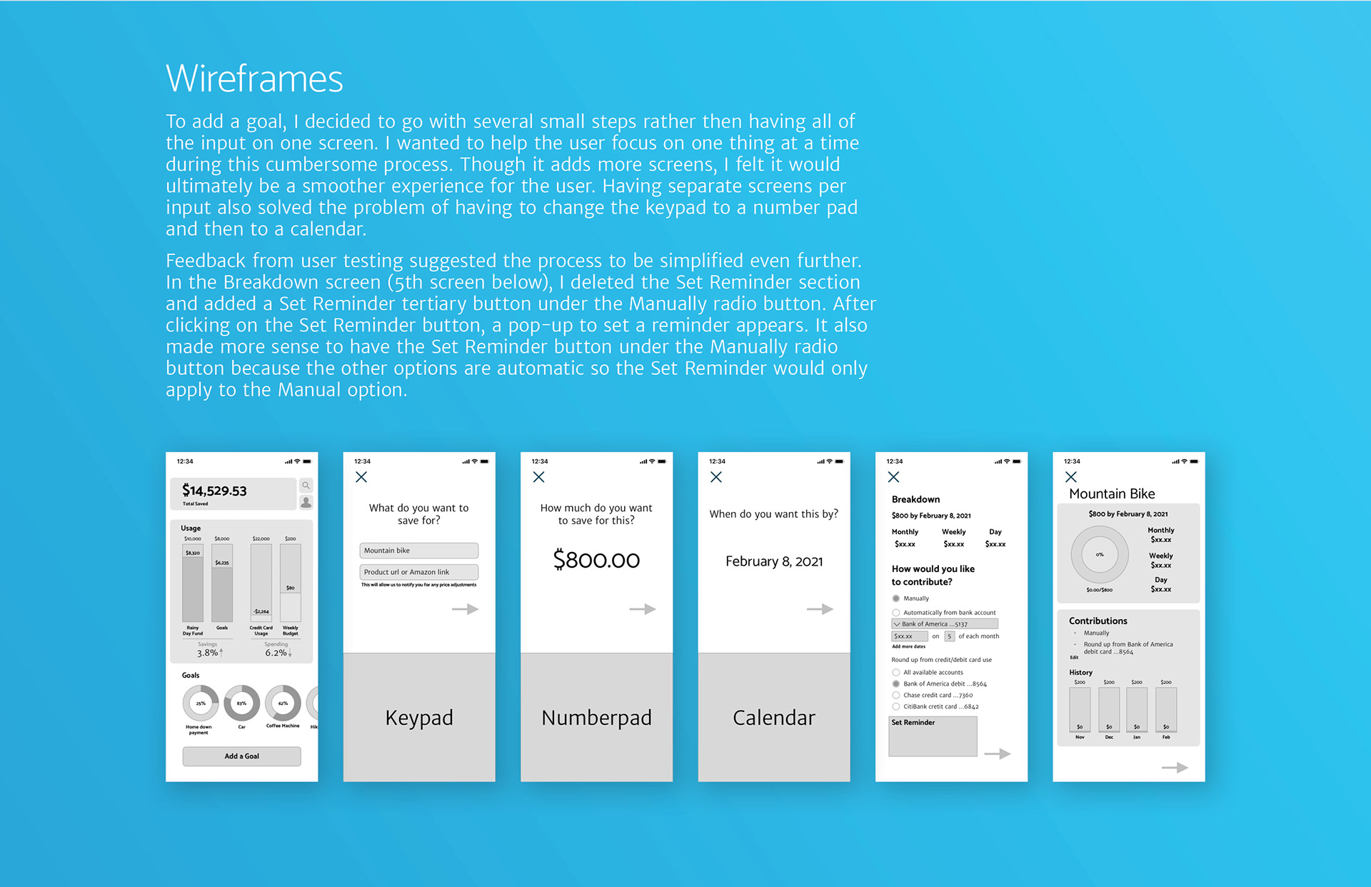 The brief for this student project was to create a fintech app that helps people save money in preparation for a big purchase or expenditure.